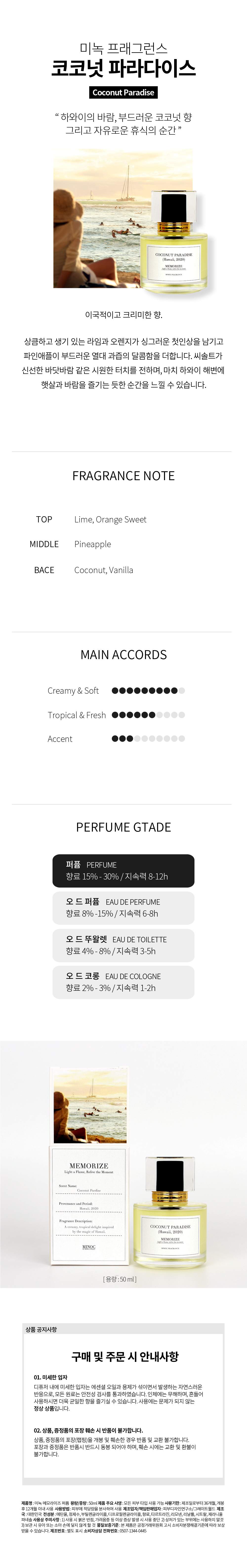 에탄올, 정제수, 부틸렌글라이콜, 디프로필렌글라이콜, 향료, 에리스로신, 브릴리언트블루 FCF, 리모넨, 리날룰, 시트랄, 제라니올, 벤질알코올, 벤질살리실레이트, 유제놀, 파네솔